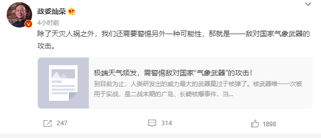 气象武器 科学尽头是玄学 知名文人学者 来自武统鲁怀安 微博