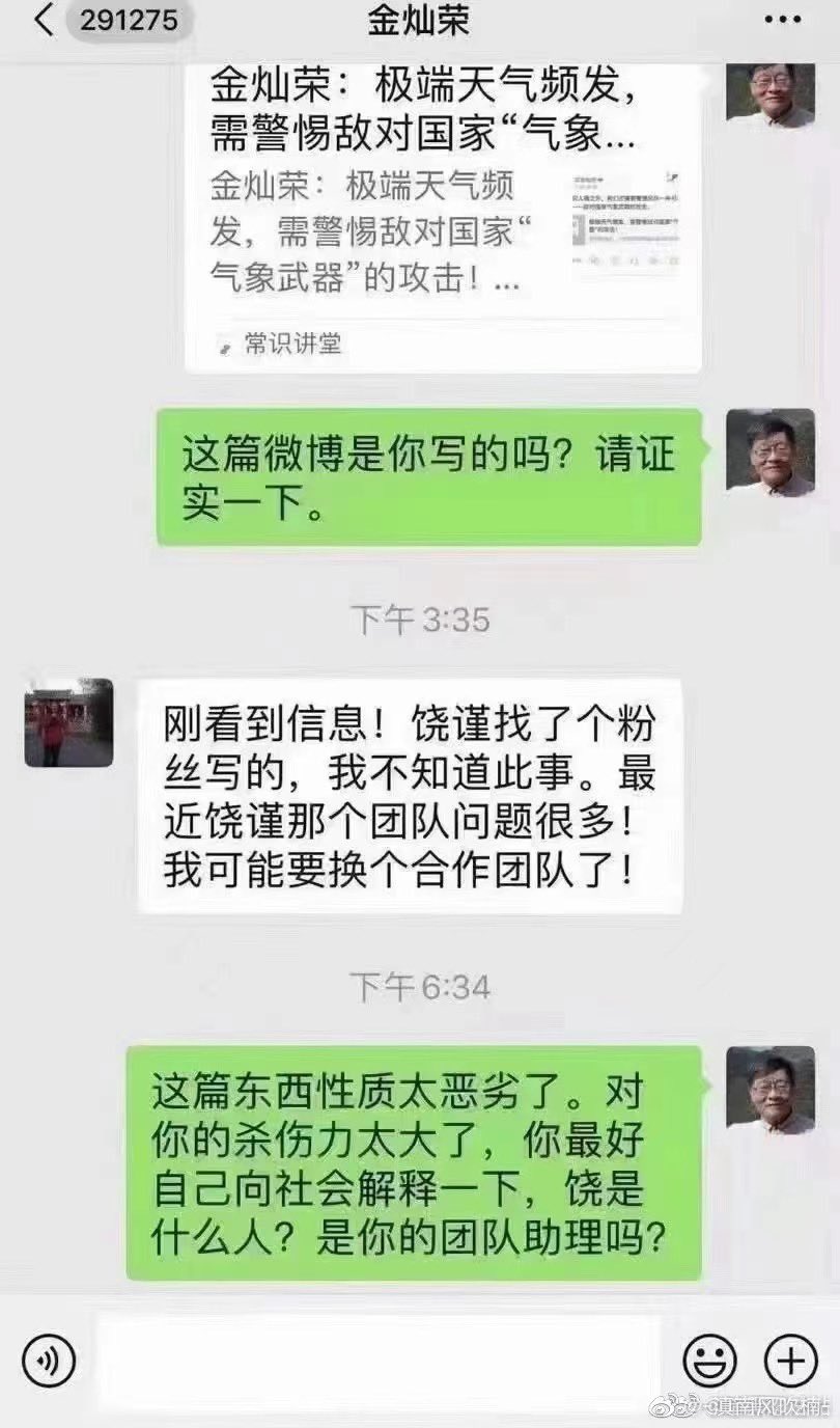 金灿荣回应 气象武器 言论 系运营者乱发 本人毫不知情 腾讯新闻