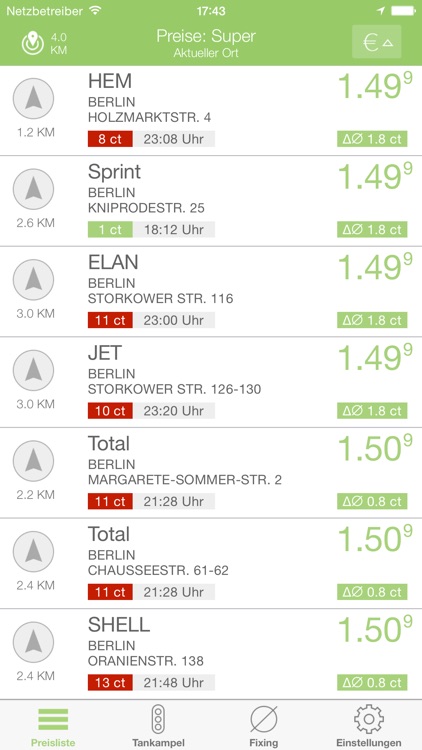 Falsche Benzinpreise oder Öffnungszeiten werden von uns entsprechend weitergeleitet. Diese bietet natürlich ähnliche Features wie die anderen Benzinpreis-Apps. Verschillende niveaumeters in diverse kleuren.